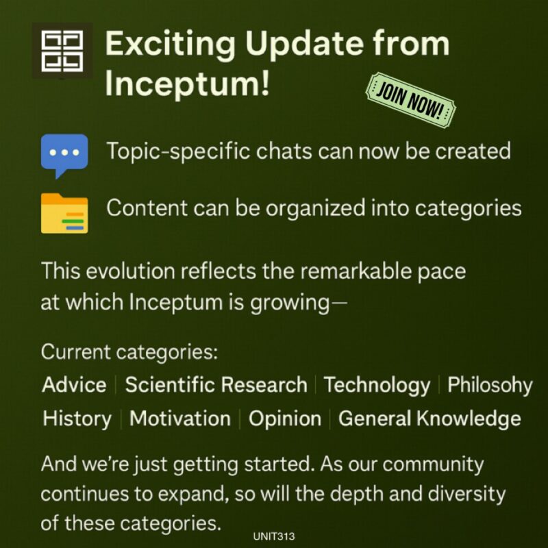 This evolution reflects the remarkable pace at which Inceptum is growing—a sign that meaningful conversations are thriving. And we are just getting started. As our community continues to expand, so will the depth and diversity of these categories.