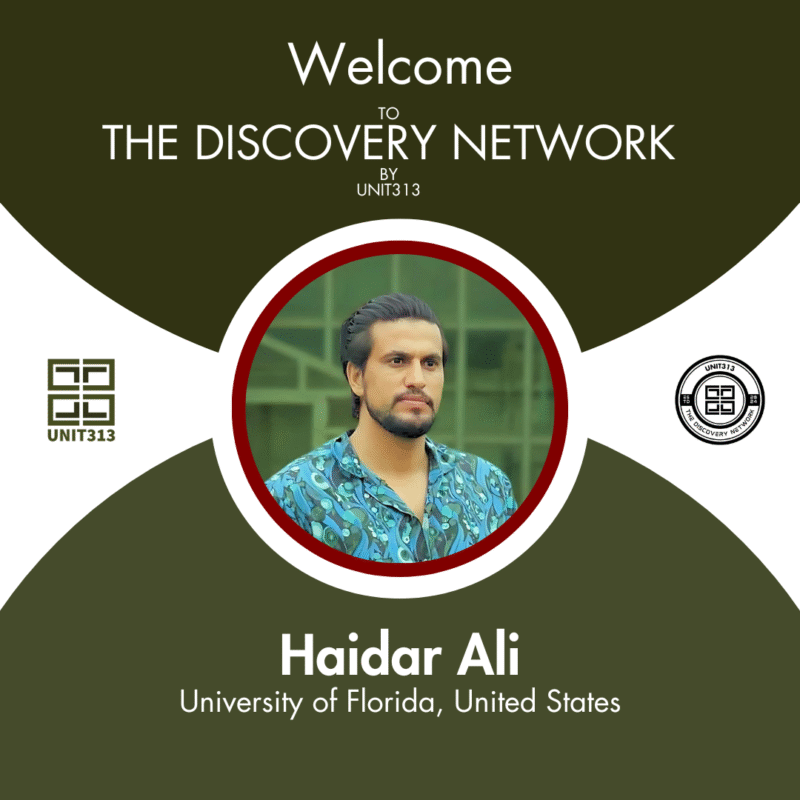 We are thrilled to have Haidar Ali join The Discovery Network by UNIT313 and look forward to his contributions as we collectively strive to elevate the standards of research and mentorship. His enthusiasm for sharing knowledge and guiding others aligns perfectly with our mission to create a thriving network of scholars and professionals.